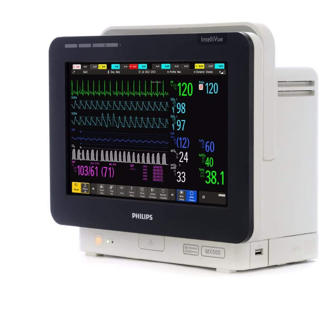 In environments with significant variation in patient severity, such as in the admission room, recovery room, conscious sedation, and neonatal ICU, patient monitors can become very difficult to perform. The IntelliVue MX450 and MX500 monitors are designed to operate in these demanding environments. The monitors are equipped with a carrying handle and can be powered by batteries; they are rugged enough to handle the rigors of in-hospital transport and are compact enough to be out of the way while on the move.