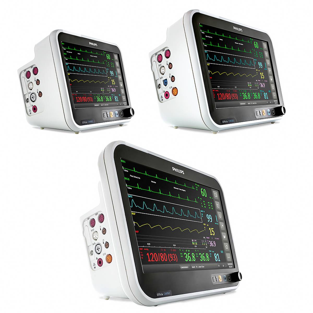 Efficia СМ сериялы пациент мониторлары ересек емделушілерді, балаларды және жаңа туған нәрестелерді бақылауға арналған. Олар науқастардың жағдайын бақылауға, талдау жүргізуге және деректерді тікелей кереует жанында құжаттауға көмектеседі. Олар көптеген физиологиялық параметрлерді басқара алады және қажет болған жағдайда дабыл сигналдарын бере алады, егер бұл параметрлер рұқсат етілген мәндерден асып кетсе. Сонымен қатар, бұл мониторларды науқастарды медициналық мекеме ішінде тасымалдау үшін пайдалануға болады.