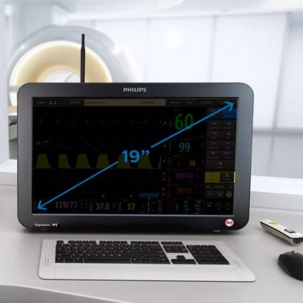 Новый фирменный дизайн Philips – 15-ти дюймовый широкоформатный дисплей, сочетает прекрасное чтение жизненных показателей в узнаваемом фирменном интерфейсе.